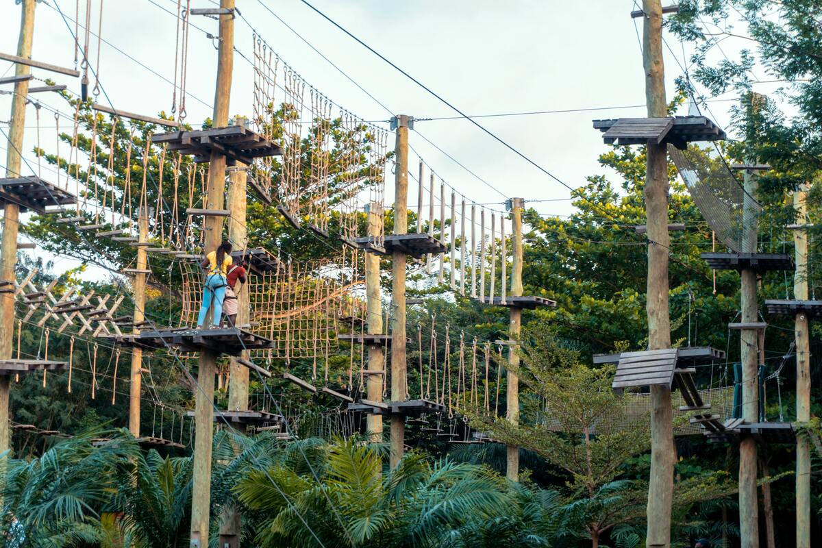Exciting and challenging ropes courses designed for adventurers of all ages, promoting physical fitness and teamwork.