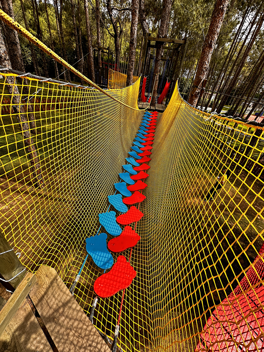 We manufacture a variety of adventure park equipment including ropes courses, climbing walls, ninja courses, and trampoline parks.